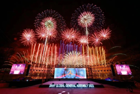 當(dāng)晚,一場盛大的煙火秀在煙花之都瀏陽上演,歡迎遠道而來的三一客人們。